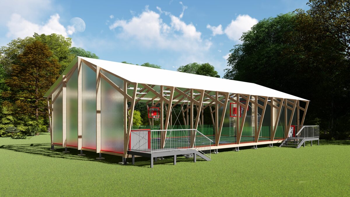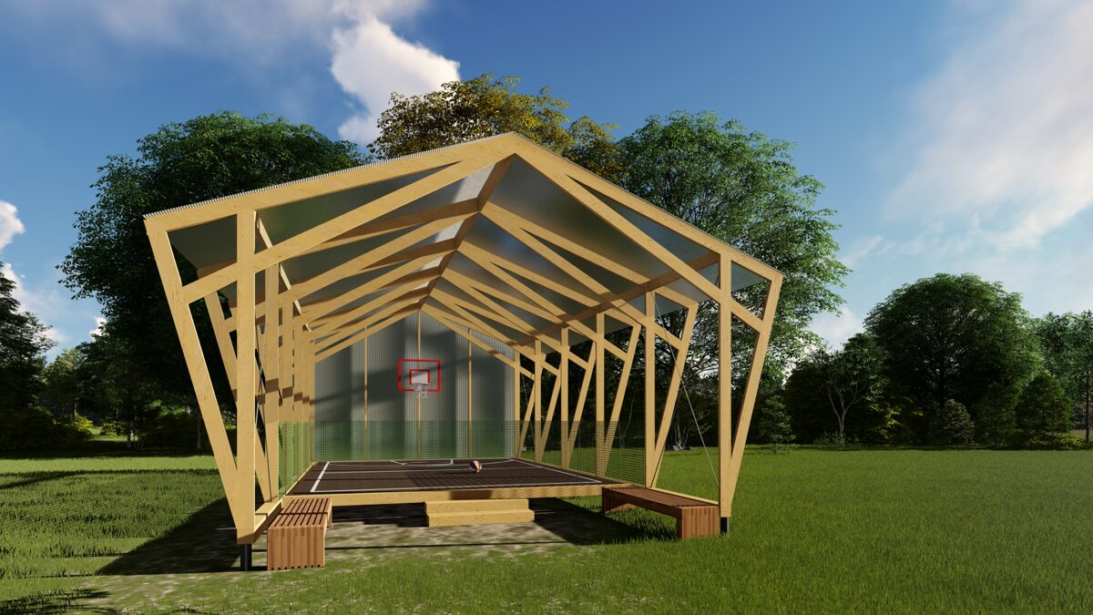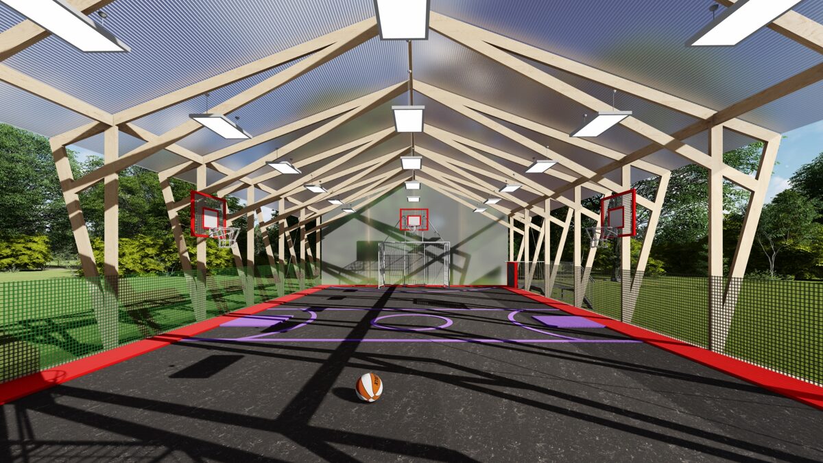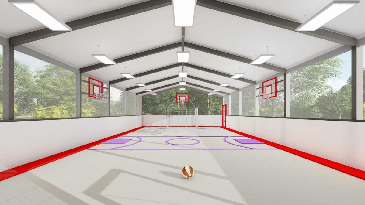 - “Hibcher” mobilais sporta centrs var tikt novietots jau zem esošas nojumes, vai tilta seguma, vai iebūvēts kā augstas amortizējošas kvalitātes sporta grīdas risinājums būvēs ar atbilstošu griestu augstumu.